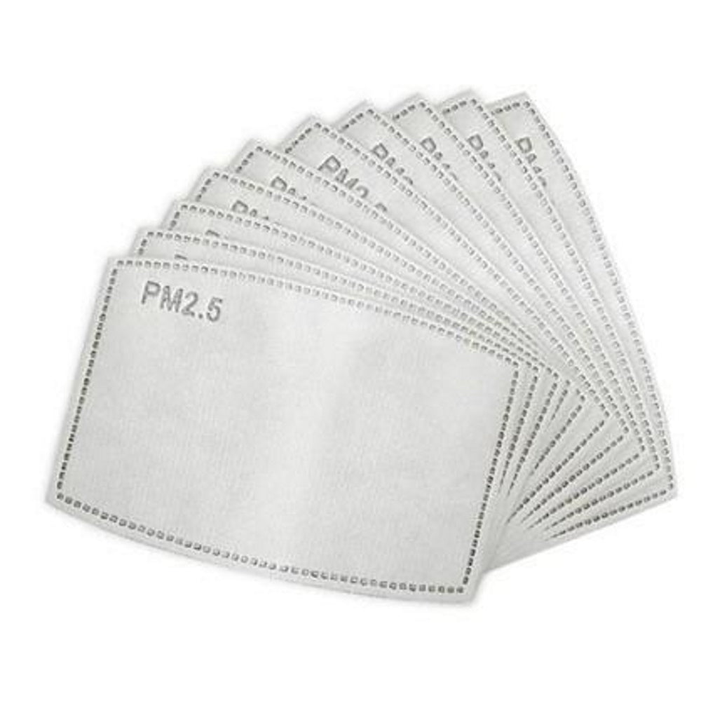 Pack of 10 replacement filters, Adult size. Each filter is made up of five layers (two layers of non-woven fabric, two layers of melt-blown fabric, and one layer of activated carbon).