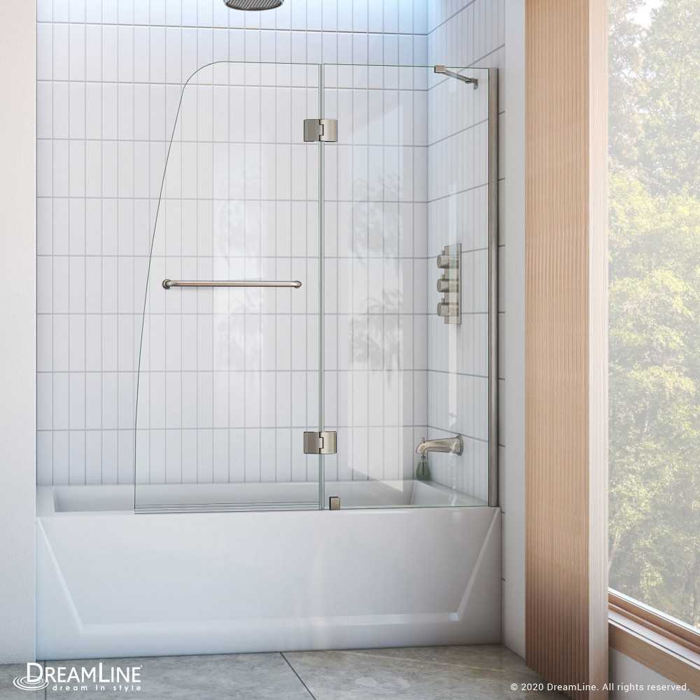 Aqua 48 in. W x 58 in. H Frameless Hinged Tub Door in Brushed Nickel