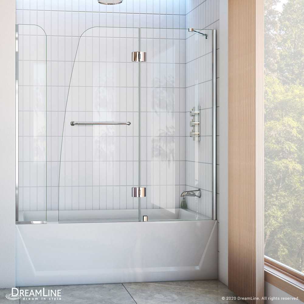 Aqua 56-60 in. W x 58 in. H Frameless Hinged Tub Door with Extender Panel in Chrome