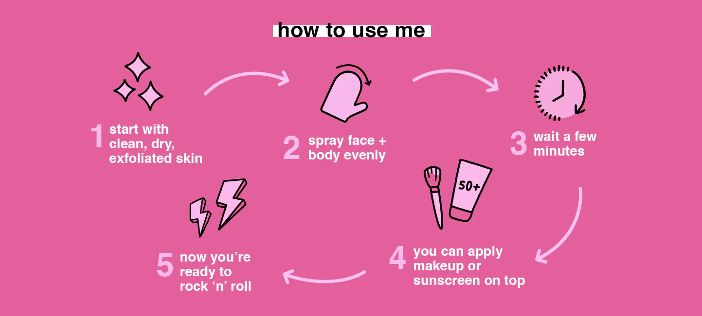 - i'm perfect for when you're looking for a tan that keeps you glowing all day long