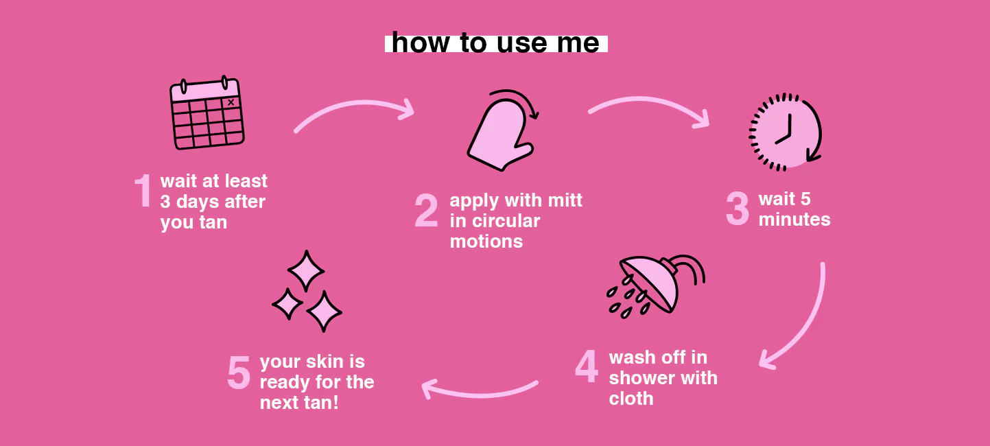 a tan eraser that helps your tan go away. removes your old tan so you can do it all again! leaves your skin perfectly primed & ready for your favourite love affair… tanning.