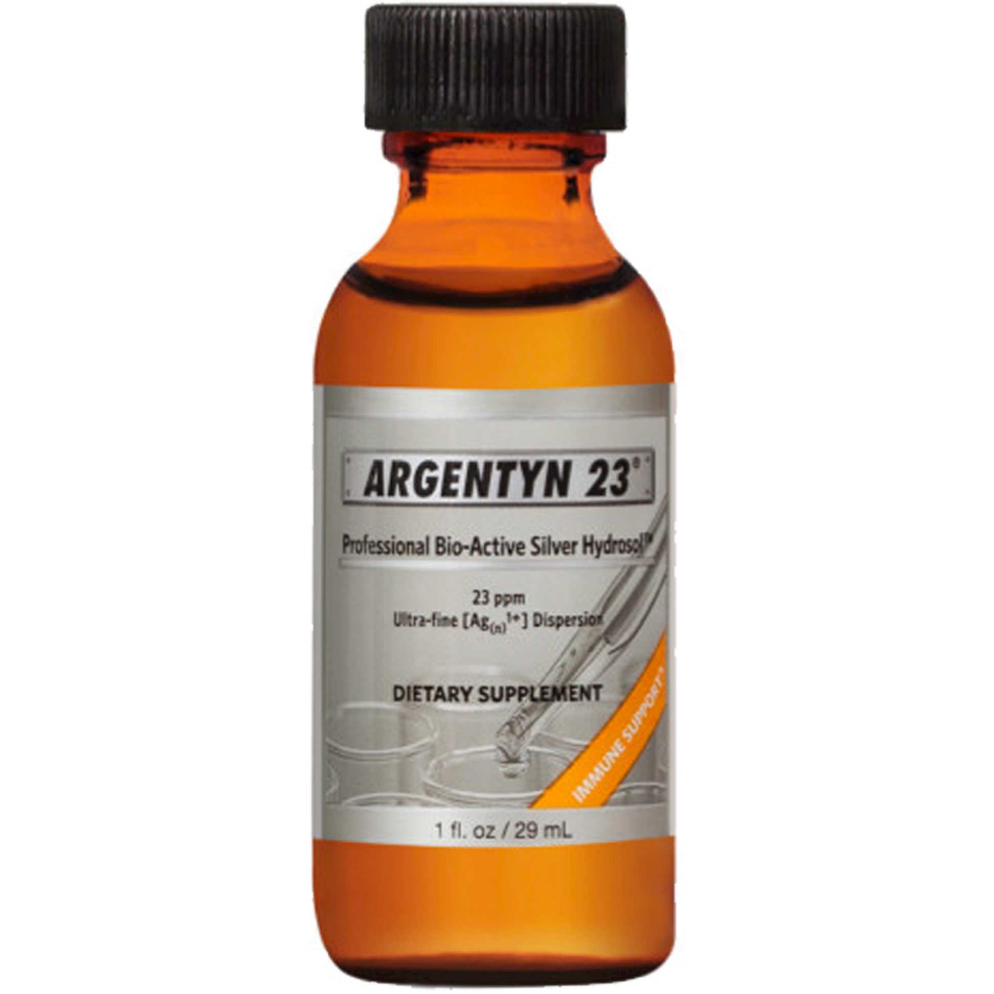 Dietary Supplement Ultra-fine fine [Ag(n)1+] Dispersion for Immune Support Argentyn 23 Professional Bio-Active Silver Hydrosol delivers advantages no other manufacturer can match: Actively Charged: >98% positively charged silver ions and nanoclusters. Easily Absorbed: Unprecedented particle size of 0.8 nanometers allows for easy absorption and excretion. Less is More: Ultra-small particle size results in greater surface area, making our low concentration of 23 ppm more effective than brands up to 1,000 ppm.