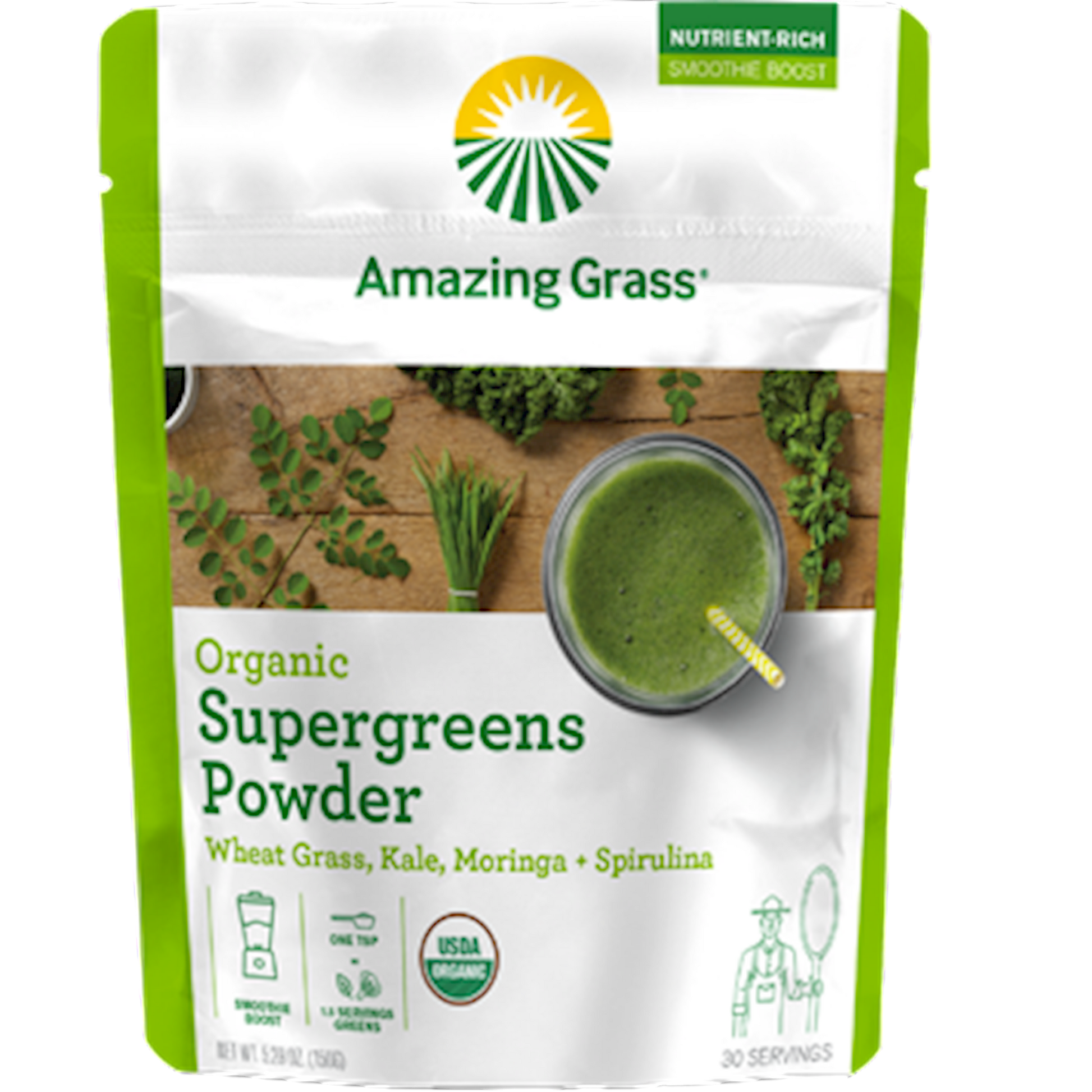 For over 3 generations Amazing Grass has organically grown nutrient-rich cereal grasses on their family farm in Kansas. Amazing Grass Organic Supergreens Powder combines their farm-fresh wheat grass and kale with phytonutrient-dense moringa and spirulina superfoods.