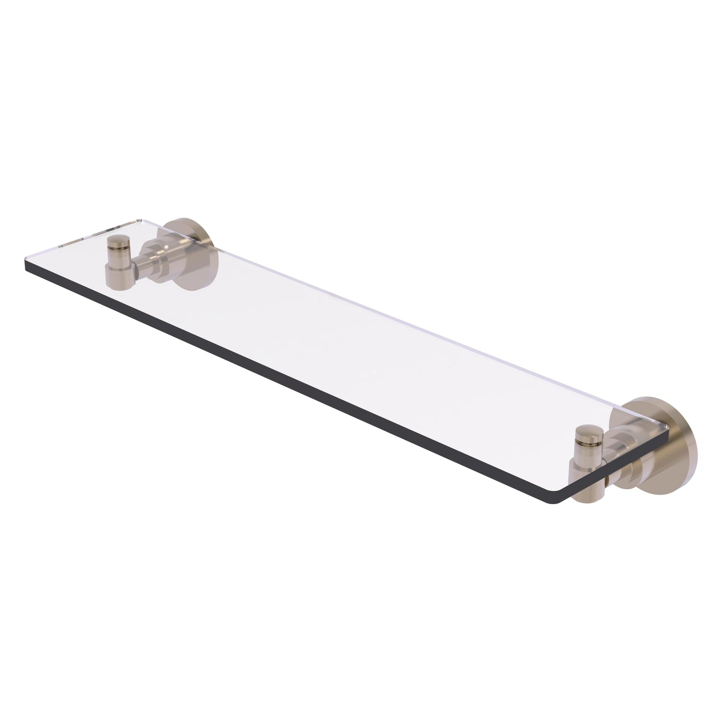 Add space and organization to your bathroom with this simple, contemporary style glass shelf. Featuring tempered, beveled-edged glass and solid brass hardware this shelf is crafted for durability, strength and style. One of the many coordinating accessories in the Allied Brass Washington Square Collection, this subtle glass shelf is the perfect complement to your bathroom decor.