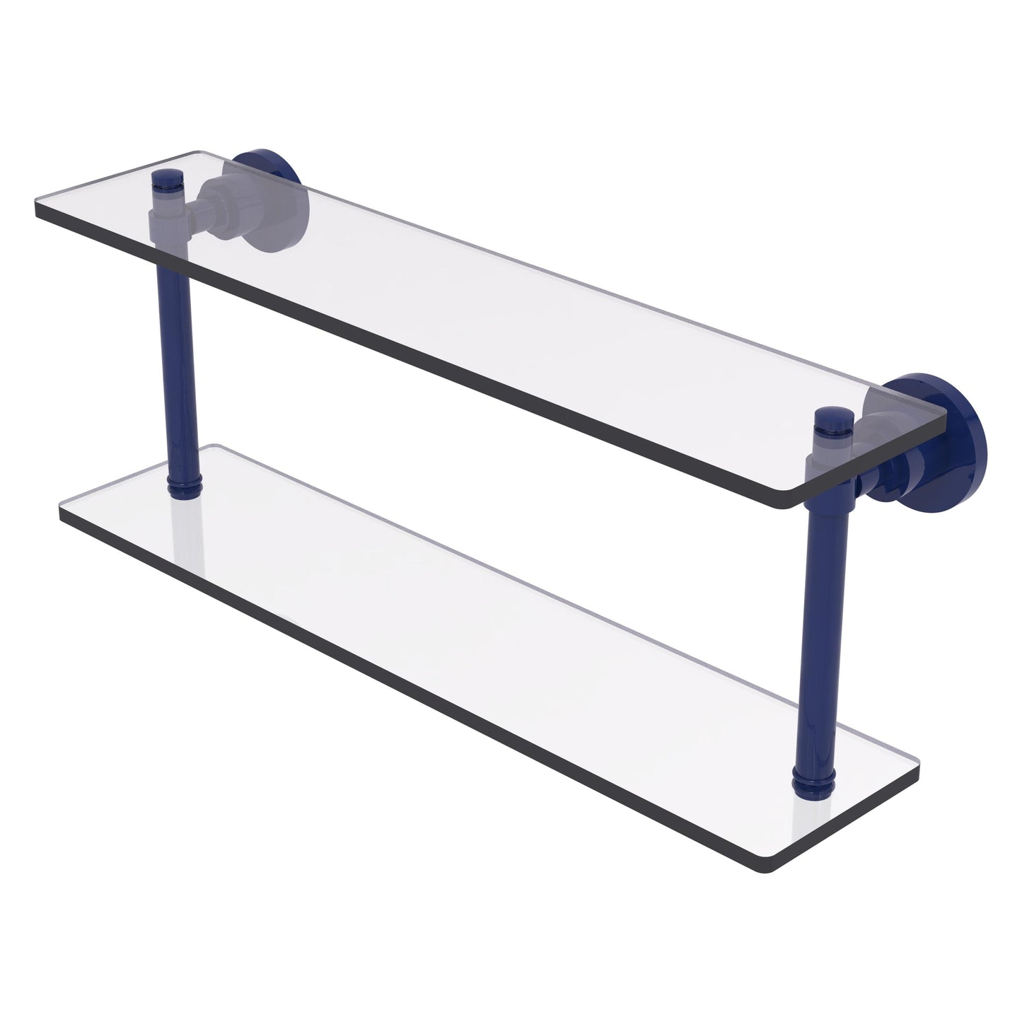 Add space and organization to your bathroom with this simple, contemporary design 2-tier glass vanity shelf. Featuring tempered, beveled-edged glass and solid brass hardware this shelving unit is crafted for durability, strength and style. One of the many coordinating accessories in the Allied Brass collection of products, this subtle glass shelf unit is the perfect complement to your bathroom decor.